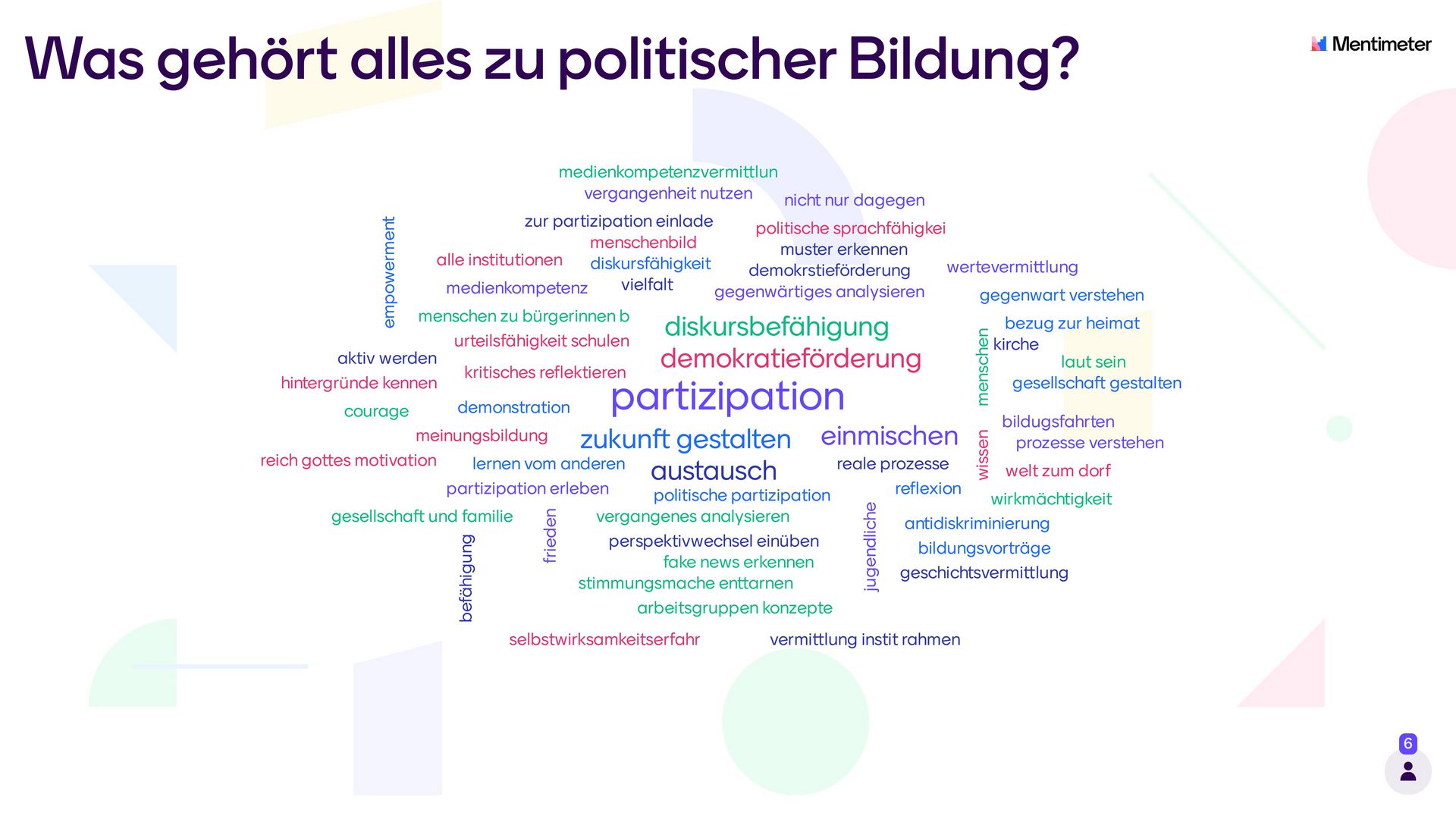 Politische Bildung dient nach unserem Verständnis in erster Linie der Vermittlung notwendiger Kompetenzen, damit junge Menschen an gesellschaftlichen Prozessen teilhaben können. Dazu gehören etwa, Informationen zu finden und zu bewerten, sich auf ihrer Basis eine Meinung zu bilden und sich einzubringen, mitzubestimmen und sich solidarisch für andere einzusetzen.